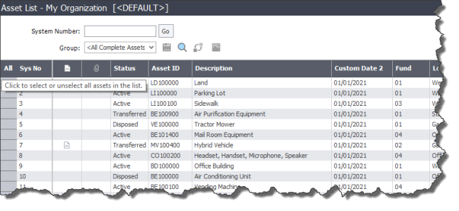 Note: Customizations to Asset List can be saved in My Views.
