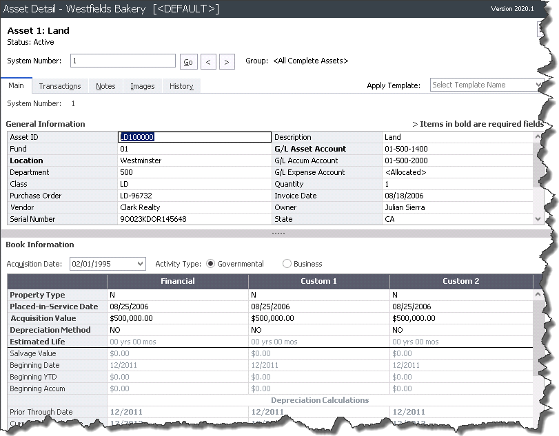 To view information about a single asset, double-click the asset, or click the Asset Detail button at the bottom of the Asset List. The asset information appears in the Asset Detail view.