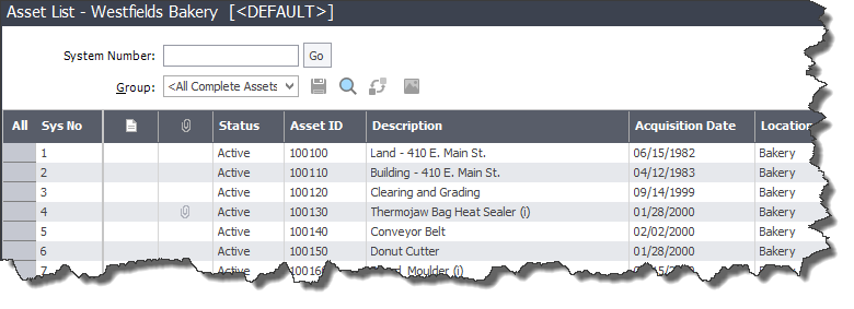 For example, click the Assets button to view the Asset List.